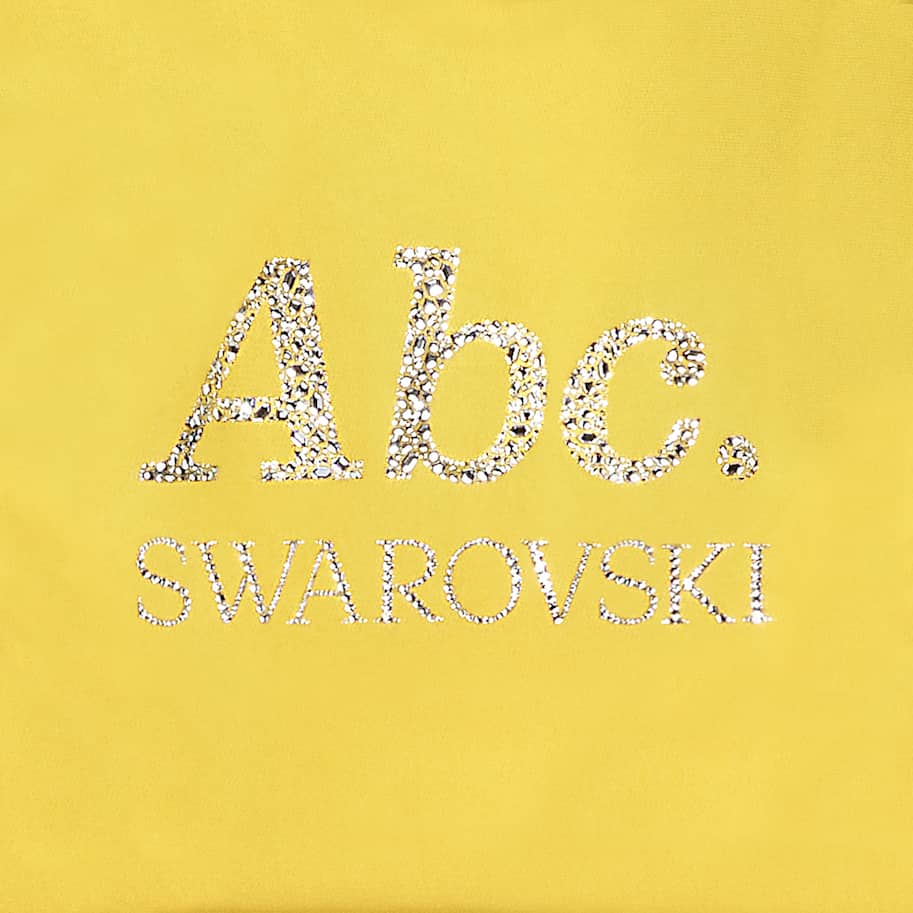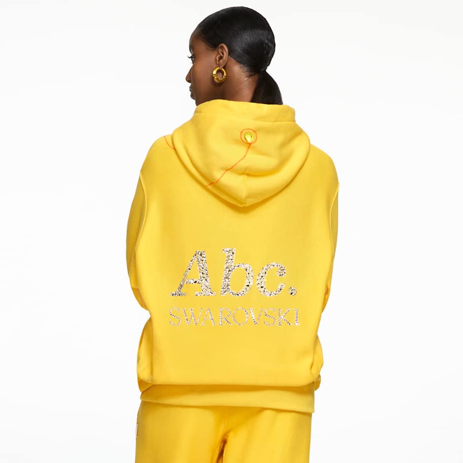 Abc. launches their melange pullover in collaboration with Swarovski. The Colored Objects Sweatshirt features an abstract flow chart on the front decorated with large sew-on crystals in shades from jonquil to topaz, exploring color theory and the prismatic effect of crystals. On the back are the Abc. and Swarovski logos in crystal transfers featuring 21 inimitable crystal shapes and sizes to make an unmatched trailblazing statement. Founded in 2015, cult label Abc. brings a comfortable cool to the Swarovski Creators Lab. The model is wearing a size large to achieve a relaxed fit.