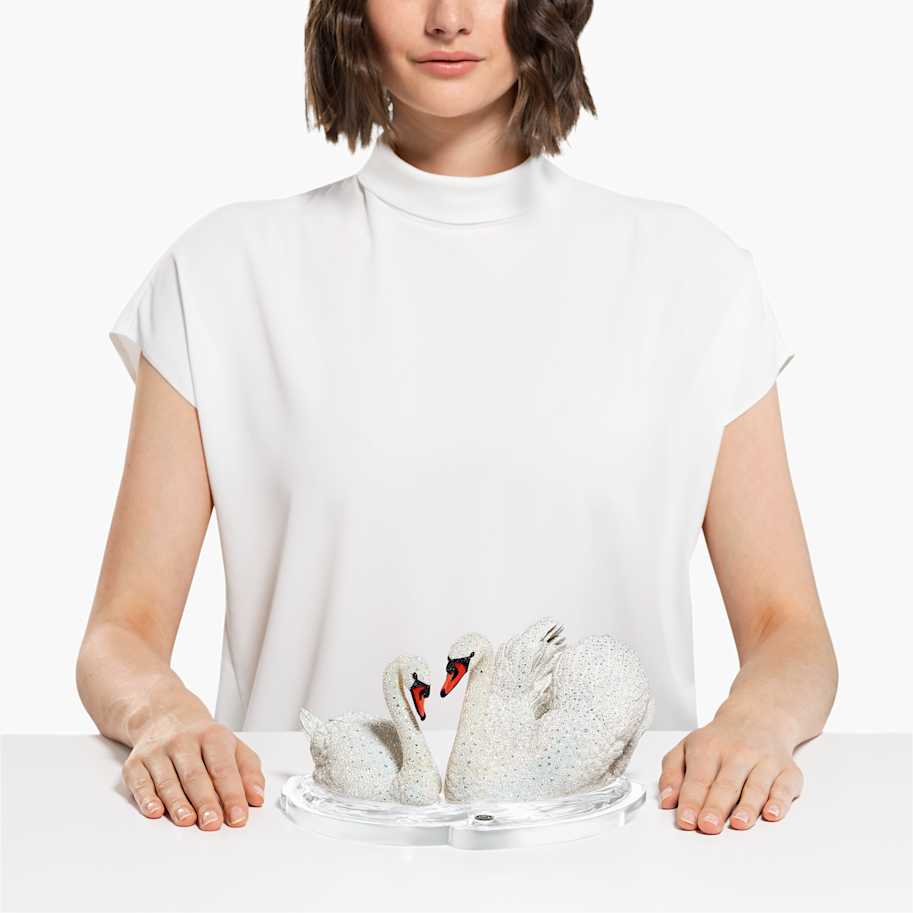 This graceful swan couple Crystal Myriad piece symbolizes the eternal beauty of power and love. The magnificent piece is wonderfully detailed and a result of expert craftsmanship. Around 32,000 sparkling crystals are hand-set into the figurine using our iconic Pointiage® technique. The two swans are set onto a glass base that evokes the imagery of a pond. Only 300 of these supremely beautiful figurines are available. It comes in a premium suitcase as well as with a certificate of authenticity. Elegance, beauty, love and commitment are reflected in this rendition of the Swarovski icon. A fantastic choice for collectors. The shipping procedure includes insurance and a delivery notice. Find out more about this procedure under Online Shop Assistant - Order Process. Decoration object. Not a toy. Not suitable for children under 15.