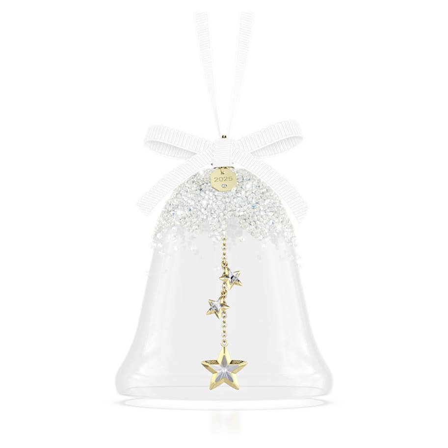 Ring in the holiday season with the Swarovski Annual Edition Bell Ornament for 2025. The immaculate glass design is covered with approximately 1,300 crystals, while the inside contains a clapper of stars produced with 109 facets and a champagne gold-tone metal finish. The piece is suspended from a white grosgrain ribbon with a 2025 engraving on the tag. It’s a joyful mix of delicate beauty and harmonious sound to enhance any festive décor. Decoration object. Not a toy. Not suitable for children under 15.