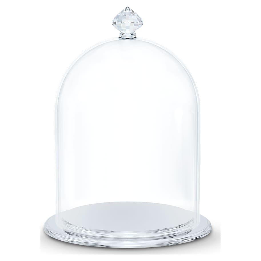 Beautiful things deserve a beautiful home. This small Swarovski bell jar allows your smaller figurines and collectibles to be kept on display with artistic flair. Made from glass on top of a polished base, the jar stands out with its ornate clear crystal handle, gleaming in 164 facets. A favorite choice for discerning collectors. Decoration object. Not a toy. Not suitable for children under 15.