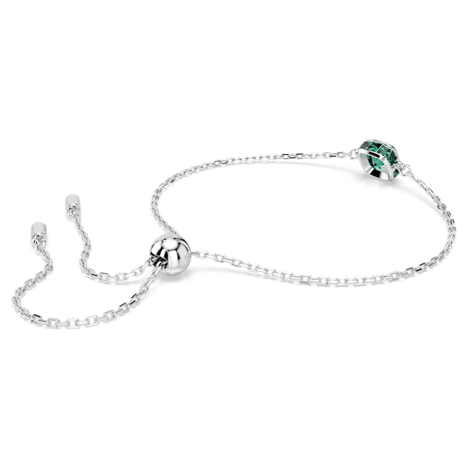 Infused with meaning, this bracelet is inspired by the birthstone of May. Suspended from a delicate chain, the rhodium plated jewelry features a single square-cut stone in an emerald green hue, a nature-inspired color that evokes birth and renewal. Perfect for a magical birthday gift or to celebrate a date that is significant to you.