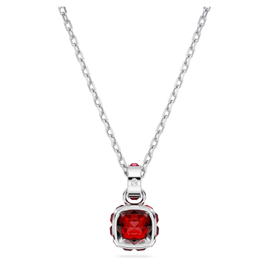 This delicate pendant is inspired by the birthstone of January. Hanging from a fine chain with a shimmering link of crystals, the rhodium plated jewelry features a single square-cut stone in a garnet red hue, representing protection as you face the day. This meaningful design makes a magical birthday gift or can be worn to celebrate a time that is significant to you.