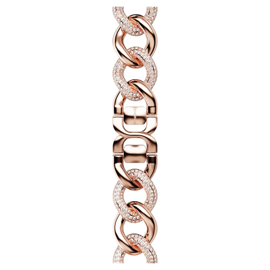 Keep time in style with this striking strap crafted for the Apple Watch®. The eye-catching design features a chain of rose gold-tone plated links, with every second link adorned in clear crystals. Emphasize the look by styling this strap with your Swarovski jewelry. This strap suits Apple Watches® sized 40mm or 41mm, including Series 4 - 9 and SE. Apple Watch® is a trademark of Apple Inc. This product is delivered with a standard size bracelet and two additional links, enabling it to be made longer or shorter with the help of our in-store staff.