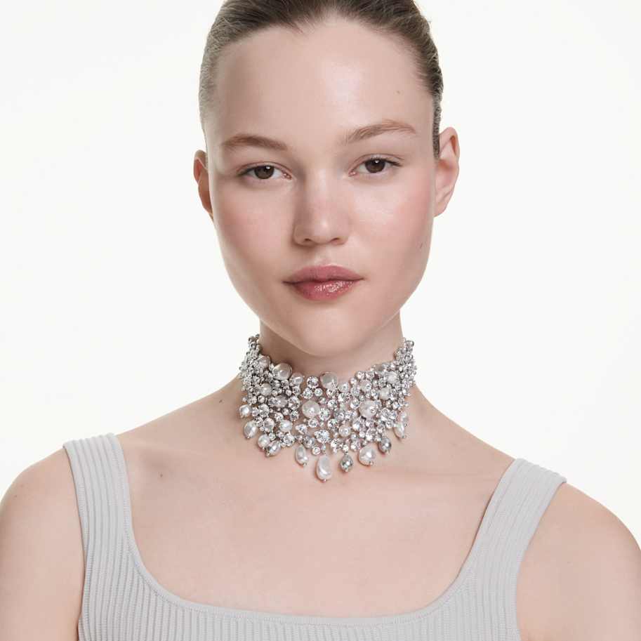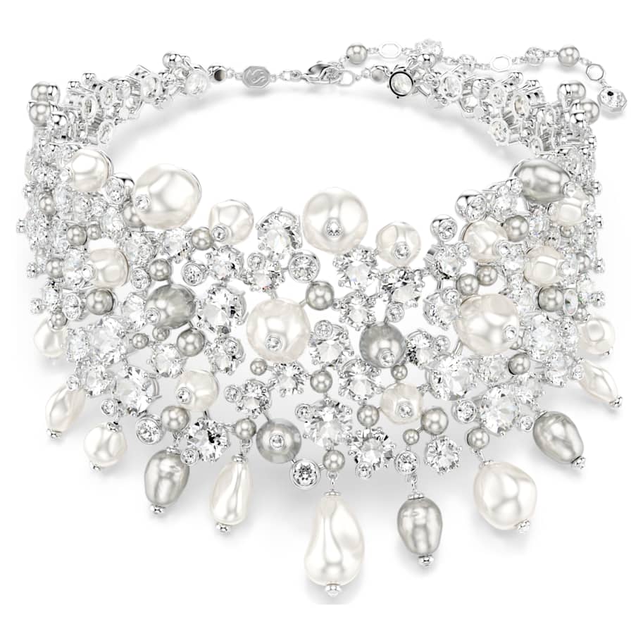 Radiant, elegant, and expressive, this Constella choker is the ultimate statement piece for a special occasion. Showcasing an intricate level of savoir-faire, the rhodium plated design features various sizes of clear crystals and white and gray Swarovski Crystal Pearls, combining to create a truly refined appearance. Pair it with the matching clip earrings or brooch for a truly showstopping look.