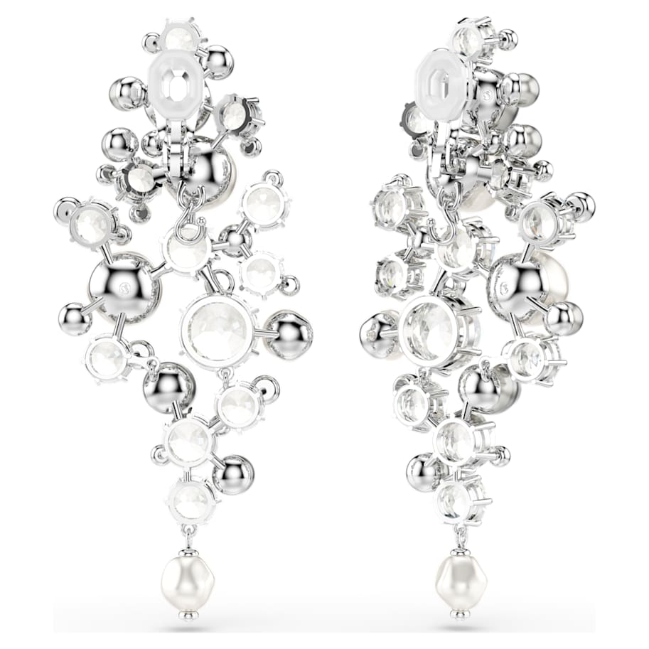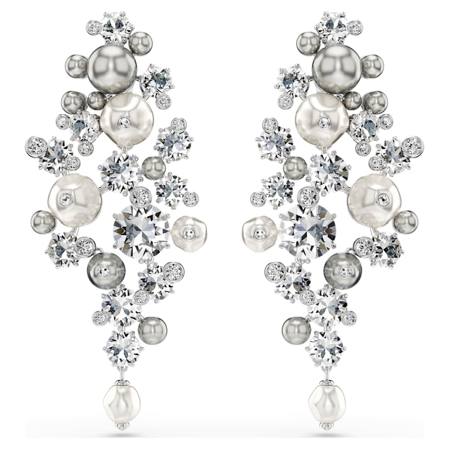 Curate the perfect look of elegance with these statement clip earrings. Showcasing an intricate level of savoir-faire, each rhodium plated piece features various sizes of clear crystals and white and gray Swarovski Crystal Pearls, combining to create a truly refined appearance. For ultimate versatility, the bottom section is detachable, allowing the earrings to be worn as a chandelier style or a smaller clip. Pair them with the matching Constella choker or brooch to truly steal the spotlight.