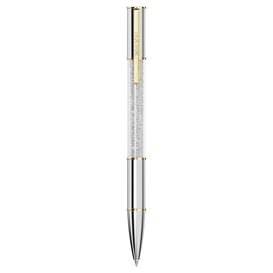 The Crystalline ballpoint pen combines creativity with luxury. This distinctive writing instrument features a round silver-tone barrel, as well as gold-tone accents that include a functional clip engraved with the Swarovski name. At its center, this eye-catching design is illuminated with approximately 480 glittering crystals, each meticulously added using the iconic Crystalline technique. A standout addition to your desk or a distinctive gift for the writers in your life. Black and blue ink refills are available to buy in Swarovski stores.