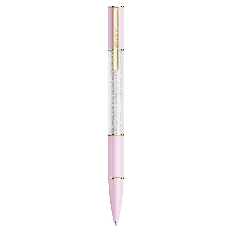 The luxurious Crystalline ballpoint pen takes inspiration from vivid color. This distinctive writing instrument features a round barrel in pink, as well as gold-tone accents that include a functional clip engraved with the Swarovski name. At its center, this eye-catching design is illuminated with approximately 480 glittering crystals, each meticulously added using the iconic Crystalline technique. A standout addition to your desk or a distinctive gift for the writers in your life. Black and blue ink refills are available to buy in Swarovski stores.