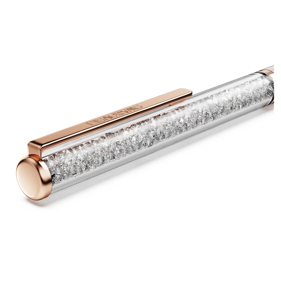 This slender ballpoint pen offers a timeless accessory for endless creativity. The slimline design is filled with around 400 clear crystals, which are visible through the long transparent window. Along with a lacquered blush pink barrel, the pen includes gold-tone finishing for an ultra-luxurious look. Gift to yourself or someone you know who has a poetic way with words. Refills of black and blue inks are available to purchase in Swarovski stores.