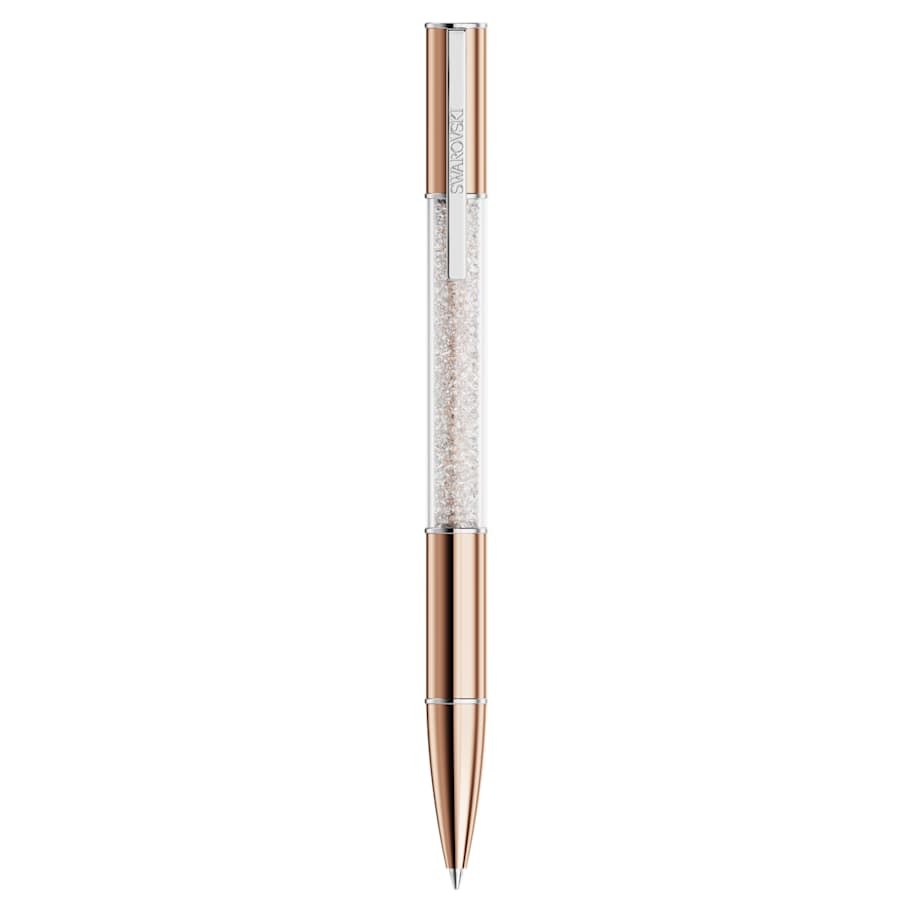 The Crystalline ballpoint pen takes inspiration from luxurious style. This distinctive writing instrument features a round barrel with a rose gold-tone plated finish, as well as chrome accents that include a functional clip engraved with the Swarovski name. At its center, this eye-catching design is illuminated with approximately 480 glittering Swarovski Crystals, each meticulously added using the iconic Crystalline technique. A standout addition to your desk or a distinctive gift for the writers in your life. Black and blue ink refills are available to buy in Swarovski stores.