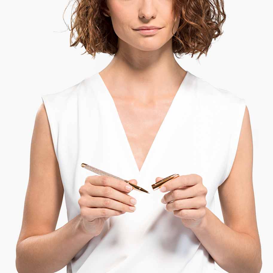 Much more than just a writing instrument: Swarovski’s Crystalline rollerball pen is filled with over a thousand clear crystals using the unique Crystalline technique. Rose-gold tone plated details, such as the click-close cap, enhance this sparkling design. Packaged in a pouch, this rollerball pen would be a thoughtful gift. Refills of black and blue inks are available in Swarovski stores.