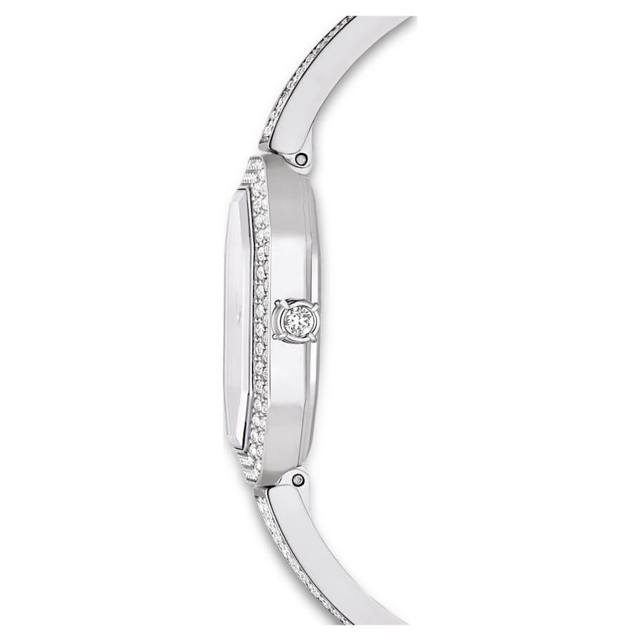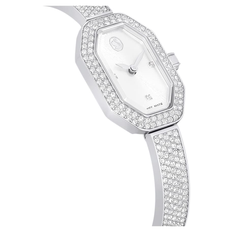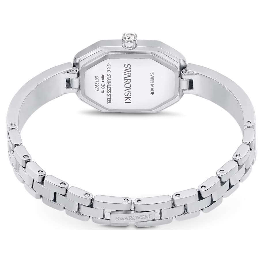 Crafted in the iconic octagon shape of Swarovski, this unique Dextera bangle watch is made for maximum glamour. The stainless steel case is 20mm x 30.5mm and is adorned with a pavé of 92 crystals on the bezel. This provides a perfect frame for the sunray dial, which features a swan logo at 12 o’clock and three crystallized index markers. Along with a single dazzling crystal set in the crown, the watch is also brought to life by 194 crystals set along the adjustable bracelet, providing exceptional beauty at every hour. This Swiss made watch is water resistant to 30m and combines joyful extravagance with signature Swarovski savoir-faire.