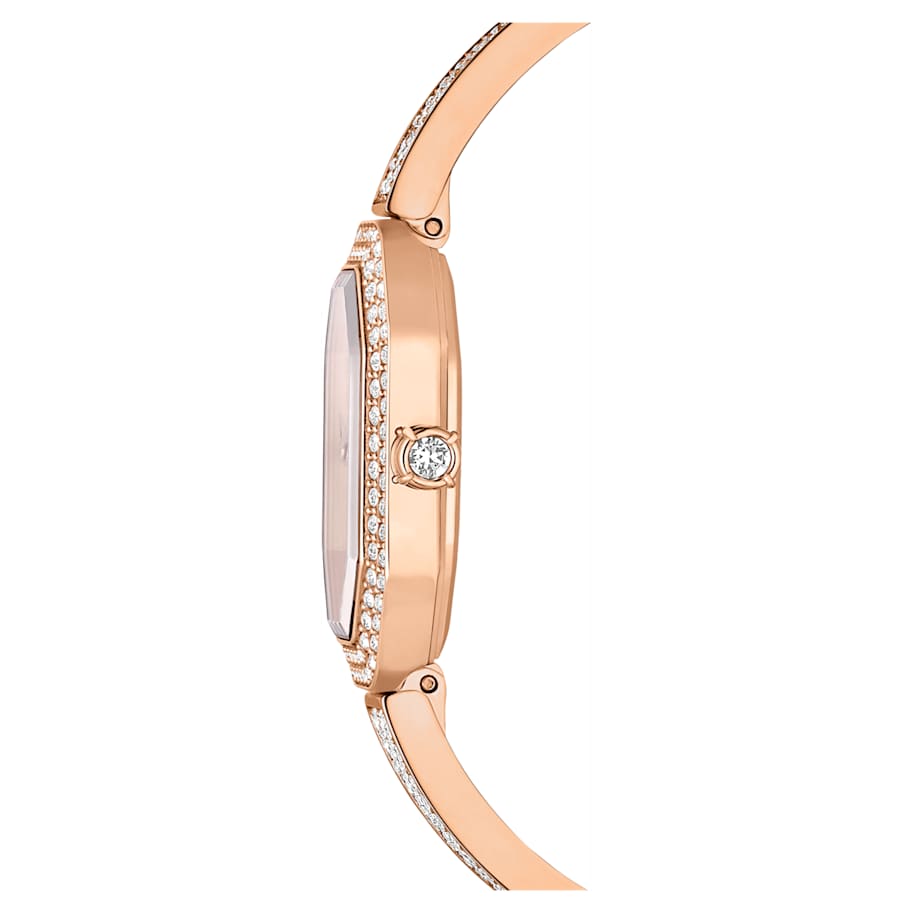 This light-catching Dextera bangle watch is crafted in Swarovski’s renowned iconic octagon shape. The 20mm x 30.5mm case features a rose gold-tone finish and is adorned with a pavé of 92 crystals on the bezel. This provides a perfect frame for the sunray dial, which features a swan logo at 12 o’clock and three crystallized index markers. Along with a single dazzling crystal set in the crown, the watch is also brought to life by 194 crystals set along the adjustable bracelet, providing exceptional beauty at every hour. This Swiss made watch is water resistant to 30m and combines joyful extravagance with signature Swarovski savoir-faire.