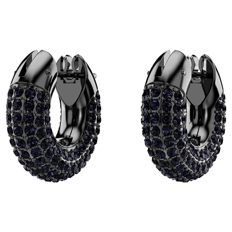 A modern spin on classic hoop earrings, this genderless pair will lend a dynamic touch to any outfit. Its sculptural design celebrates Swarovski's iconic pavé technique with glittering foiled crystals set against a ruthenium plated frame. Not just for daytime, wear this statement duo with after-dark looks, too. These earrings are part of the Dextera family, designed by Creative Director Giovanna Engelbert for Collection II.