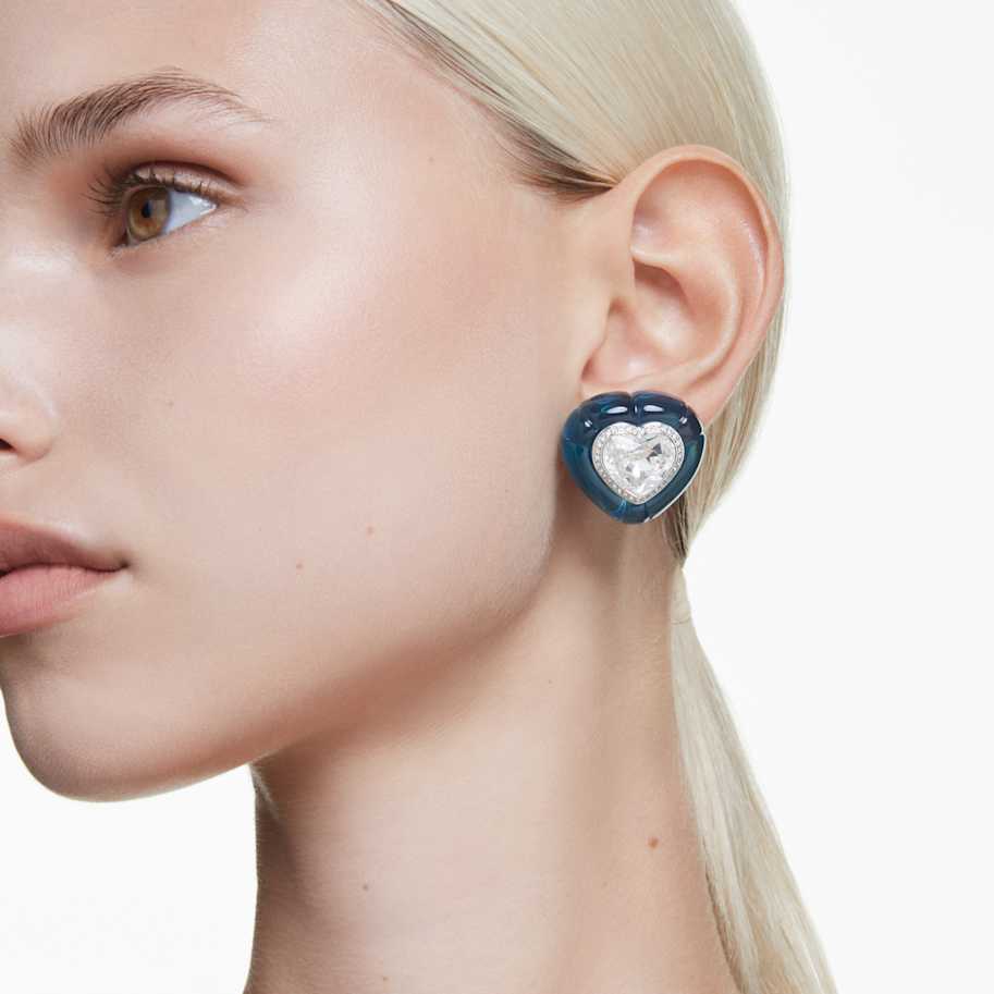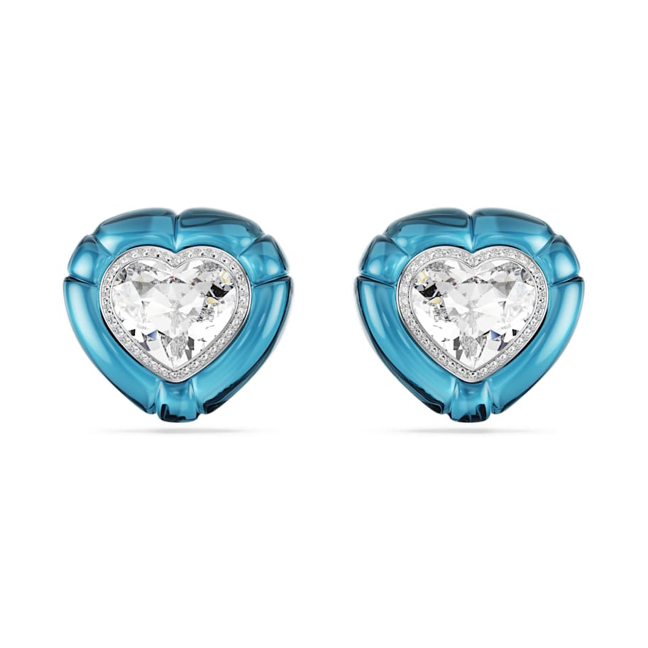 Face the day in full color with these Pop Art-inspired clip earrings. Each cushioned blue heart features a clear heart-shaped crystal, surrounded by clear pavé in a rhodium plated frame. A romantic candy style that can be paired with other playful jewelry from the same Dulcis family.