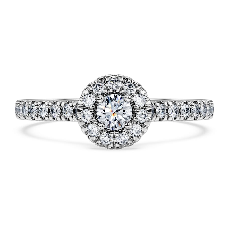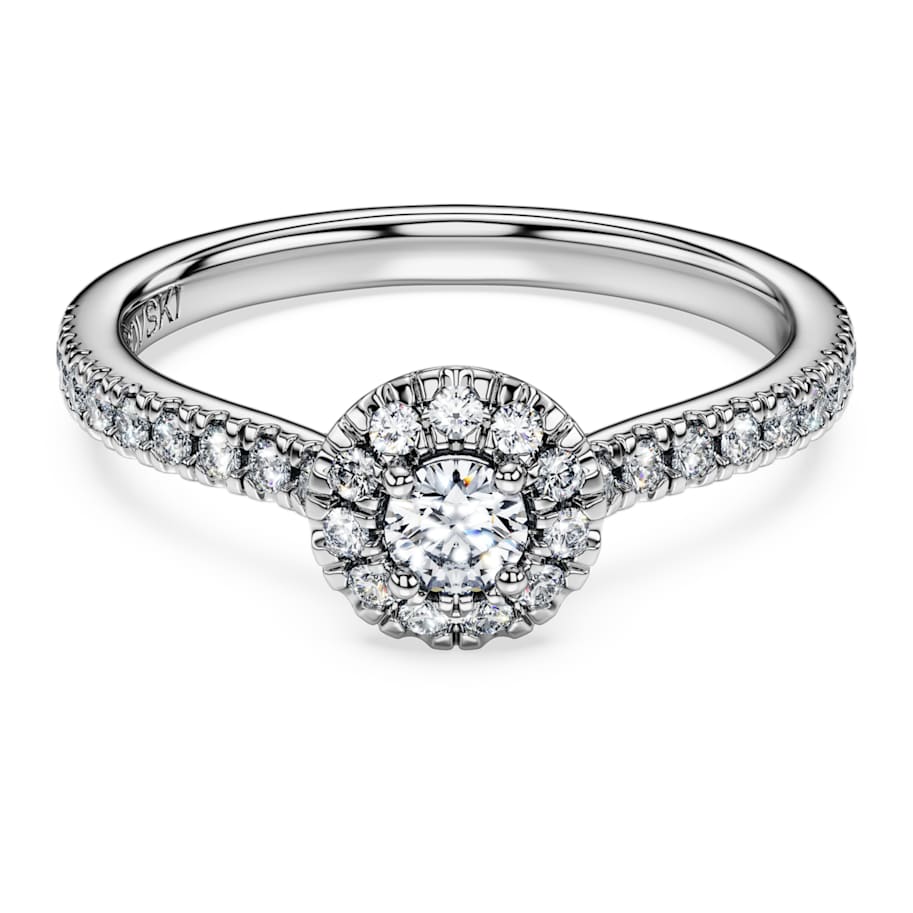 Embrace pure radiance with the exquisite savoir-faire of this Eternity halo ring. The sterling silver design features a dazzling pavé halo of laboratory grown diamonds, with a round laboratory grown diamond at the center. Totaling 0.45 carat, it can be paired beautifully with a matching band ring. This jewelry is IGI (International Gemological Institute) certified and is part of the Eternity collection.