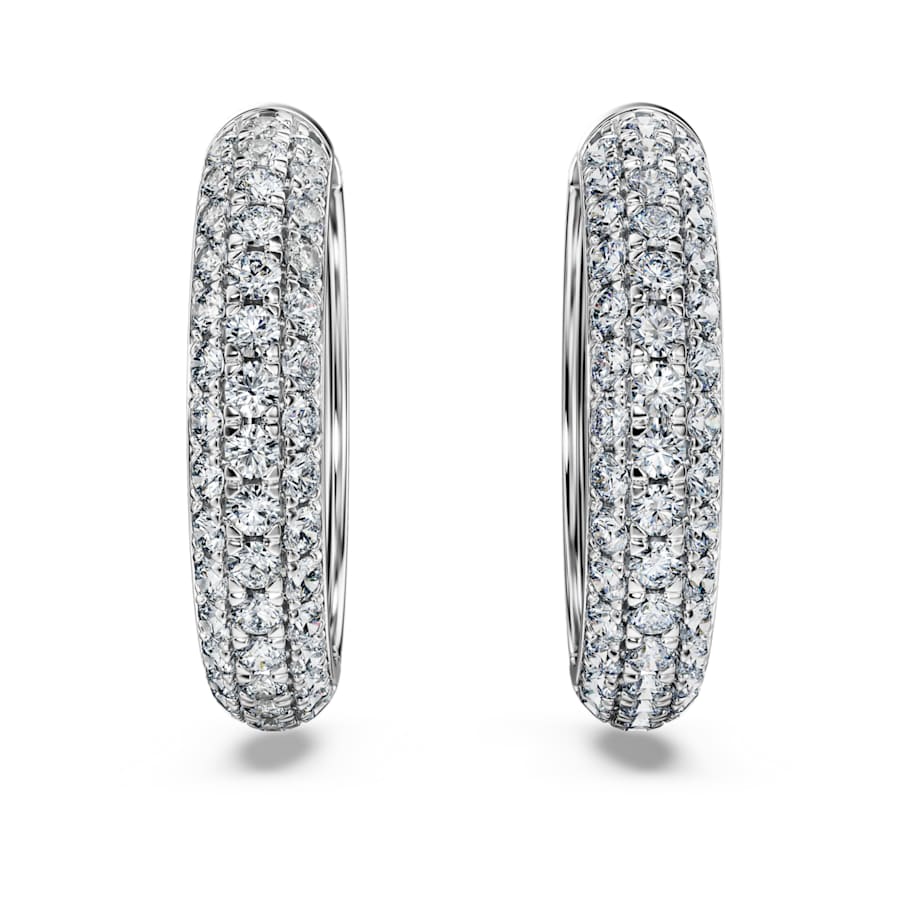 These exquisite pierced earrings take the classic hoop style to a new level of luxury. Each 14K white gold piece is detailed with round laboratory grown diamonds, totaling 2.0 carat. Perfect for injecting radiance into your everyday style. This jewelry is IGI (International Gemological Institute) certified and is part of the Eternity collection.