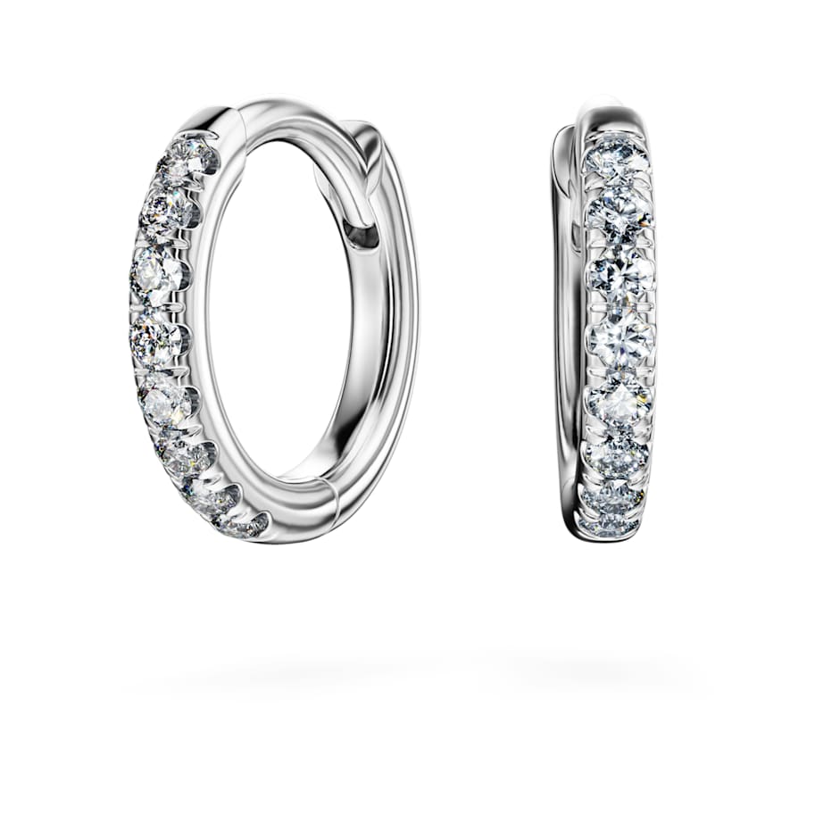 These glittering pierced earrings take the classic hoop style to a new level of luxury. On the front side, the 14K white gold pieces feature a pavé of round laboratory grown diamonds, totaling 0.1 carat. A sensational way to light up your look. This jewelry is IGI (International Gemological Institute) certified and is part of the Eternity collection.