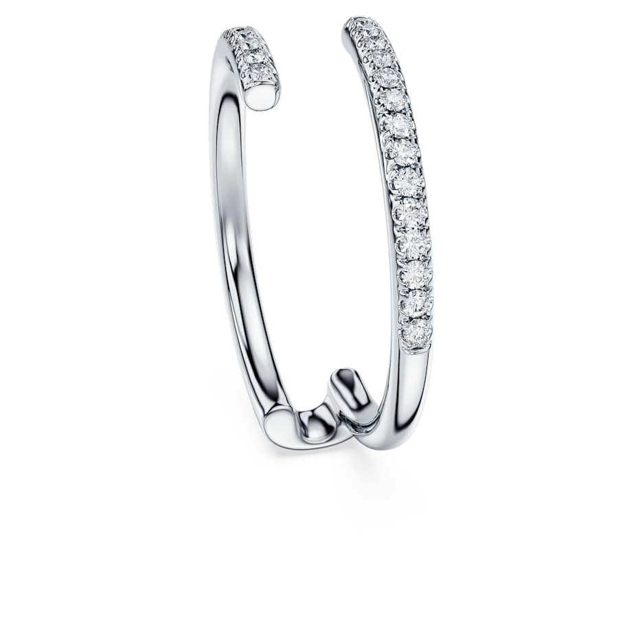 This incomparable Eternity ring combines unique form with glittering beauty. The 14K white gold band features an open double shank design with uniform rows of round laboratory grown diamonds totaling 0.2 carat. The perfect match for our asymmetric solitaire ring. This jewelry is IGI (International Gemological Institute) certified and is part of the Eternity collection.