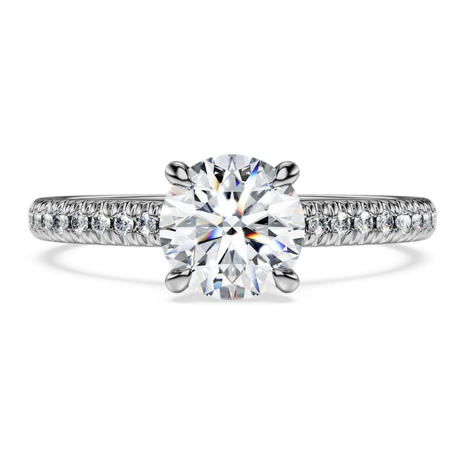 Every detail of this radiant Eternity ring has been crafted to catch the light. The 14K white gold design is detailed with small laboratory grown diamonds, while a round, prong-set laboratory grown diamond sits at the center – all totaling 1.2 carat. An elegant piece of beauty that makes a sensational engagement choice. This jewelry is IGI (International Gemological Institute) certified and is part of the Eternity collection.