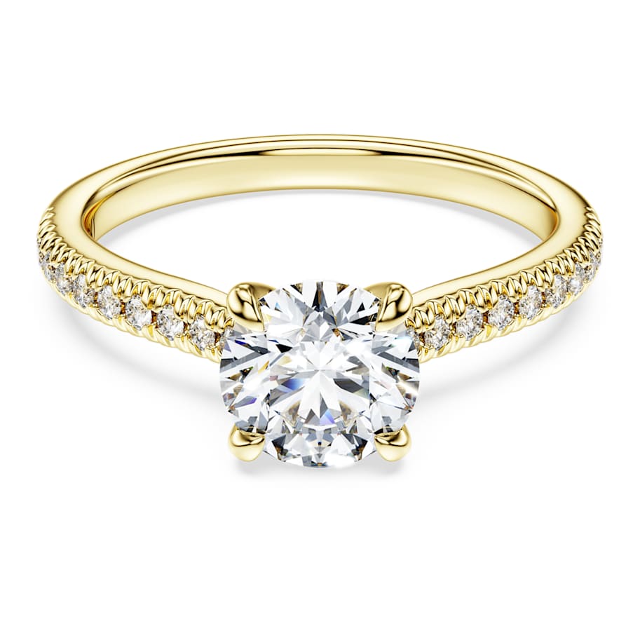 Every detail of this radiant Eternity ring has been crafted to catch the light. The 14K yellow gold design is detailed with small laboratory grown diamonds, while a round, prong-set laboratory grown diamond sits at the center – all totaling 1.2 carat. An elegant piece of beauty that makes a sensational engagement choice. This jewelry is IGI (International Gemological Institute) certified and is part of the Eternity collection.