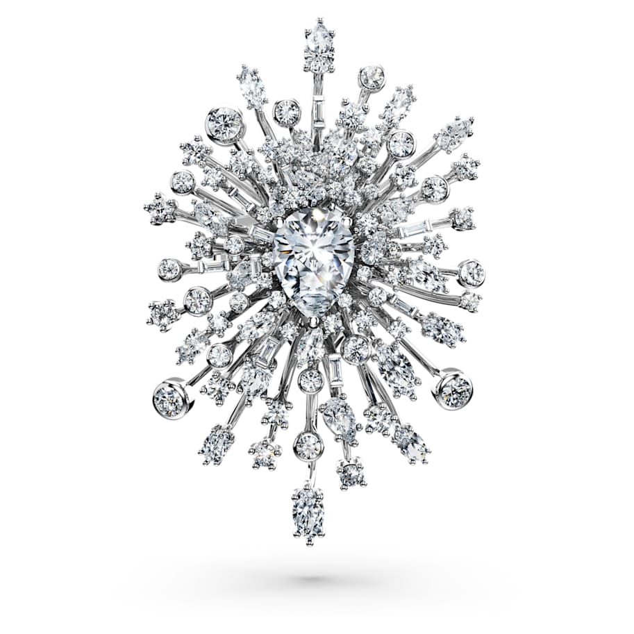 Like a collision of stars in a light-filled galaxy, this dramatic brooch explodes with wondrous beauty. The 18K white gold design features a multitude of laboratory grown diamonds, presented in a variety of shapes and sizes, and extending out in different directions. The overall effect is one of scintillating joy. Wear this piece to inject any outfit with a spellbinding display of Swarovski savoir-faire. This jewelry is part of the Galaxy collection created by Giovanna Engelbert. The laboratory grown diamonds in the Galaxy collection are graded and certified by IGI (International Gemological Institute) according to the 4Cs of diamond quality. This piece is made to order.