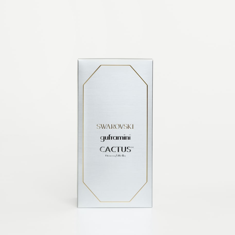 Small scale meets grand design, as Swarovski and Gufram combine their passion for meticulous craftsmanship and attention to detail. The Guframini CACTUS® distils the magic and timeless appeal of Gufram’s celebrated coat rack into a miniature creation in a 1:8 scale of soft polyurethane. 200 grams of double-pointed green crystals are precisely set on each creation, taking around 250 hours of skilled work. A stunning piece of art for unique interior design.