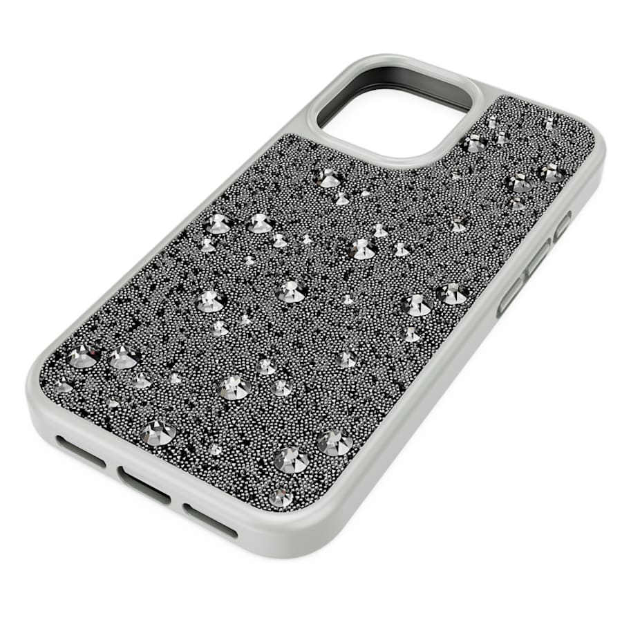 Glamour radiates from this shimmering smartphone case. Compatible with the iPhone® 16 and official Apple® chargers, the joyfully extravagant case features silver Crystal Fabric embellished with tone-on-tone flatbacks in varying sizes. A dazzling gift idea or a unique way to adorn your phone with pop luxury. iPhone® is a registered trademark of Apple Inc. Apple® is a registered trademark of Apple Inc.