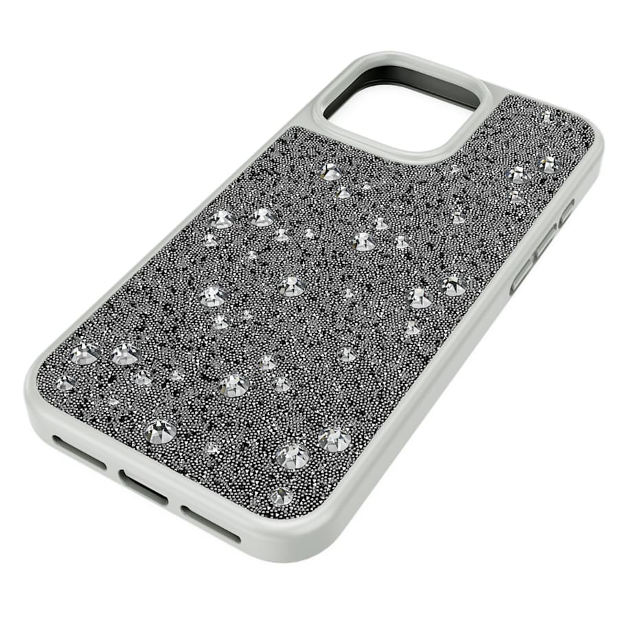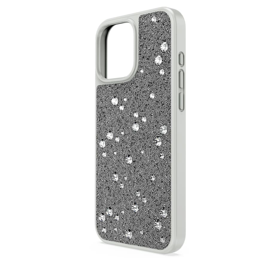 Glamour radiates from this shimmering smartphone case. Compatible with the iPhone® 16 Pro Max and official Apple® chargers, the joyfully extravagant case features silver Crystal Fabric embellished with tone-on-tone flatbacks in varying sizes. A dazzling gift idea or a unique way to adorn your phone with pop luxury. iPhone® is a registered trademark of Apple Inc. Apple® is a registered trademark of Apple Inc.