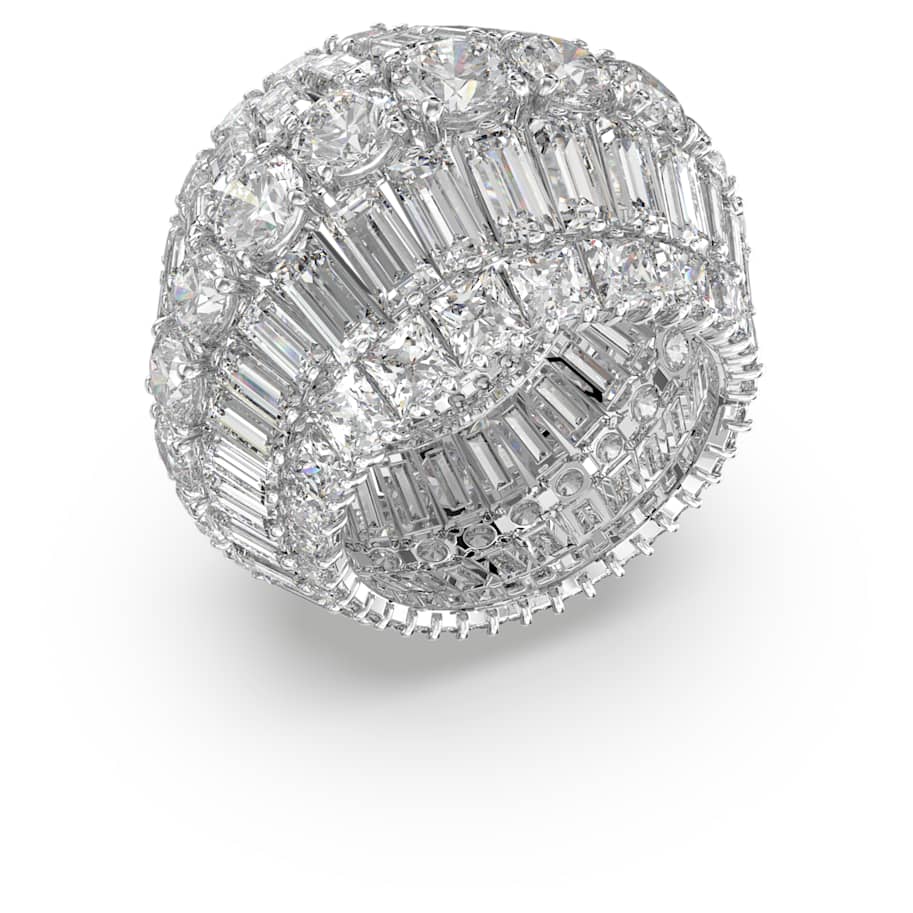 Designed to spellbind with its daring three-dimensional shape, this cocktail ring makes a sculptural statement. Expertly crafted from step cut and brilliant cut clear stones, wear it solo to bring elegance and a dose of drama to any look, from hoodies and simple T-shirts to sleek tailoring and evening dresses. This ring is part of the Hyperbola family, designed by Creative Director Giovanna Engelbert for Collection I.