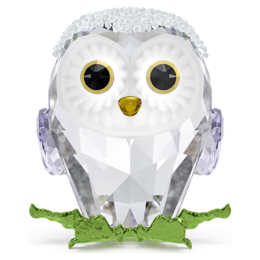 With its bright wide eyes and snow-covered head, this baby owl is irresistibly charming. Inspired by the Idyllia family, the ornament is crafted from 226 facets and approximately 420 crystal rocks. The owl sits atop a branch that is formed from metal with a green surface finish. An enchanting piece that is sure to bring joy to your home décor. Decoration object. Not a toy. Not suitable for children under 15.