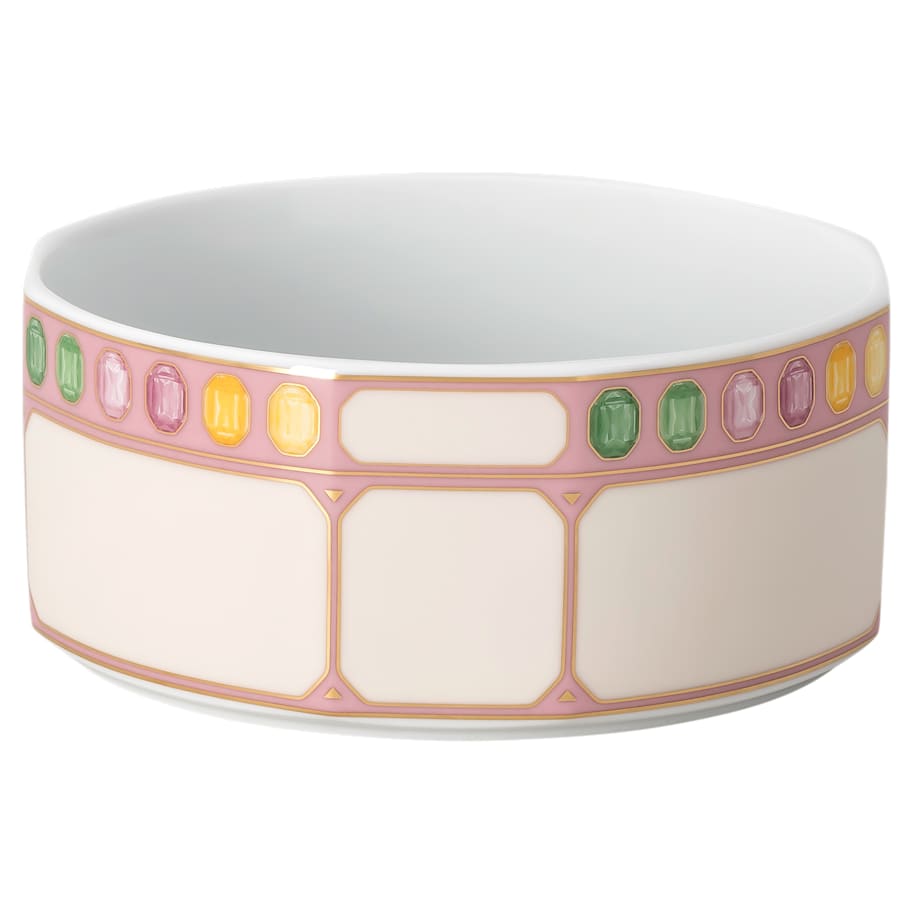 Start each day with the vibrancy and style of this faceted Idyllia cereal bowl. Using an exclusive technique, the pink and marshmallow porcelain is printed with a gemstone motif on each side that captures the essence and radiance of crystals. Created in partnership with porcelain brand Rosenthal, it is further decorated with fine gold-tone lines, giving you a beautiful way to bring joy into every morning. This cereal bowl is dishwasher safe, but not suitable for use in a microwave.