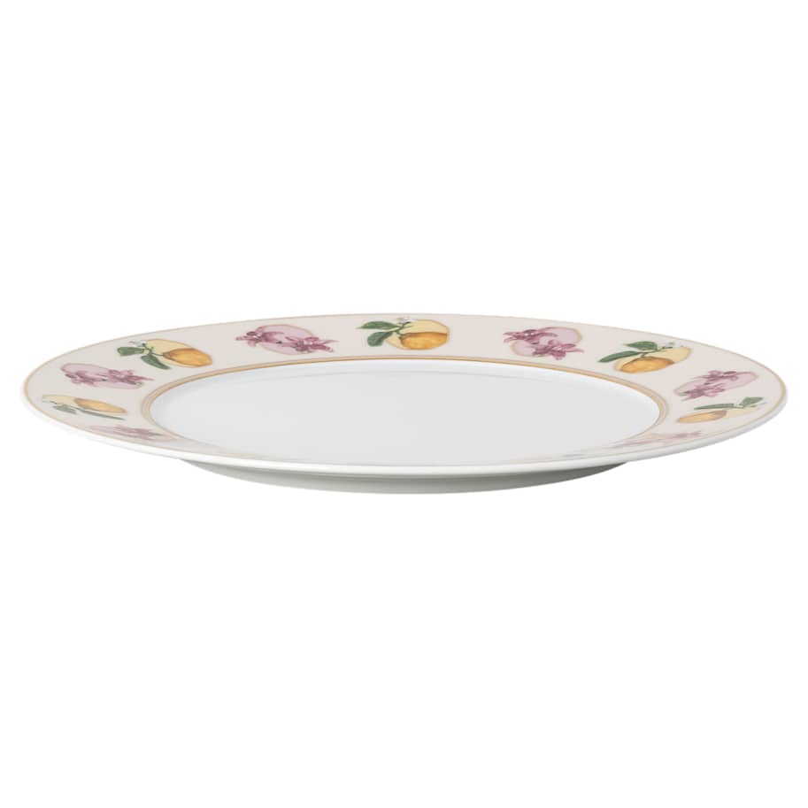 Serve your sweetest treats on a dessert plate filled with joy. Using an exclusive technique, the marshmallow porcelain is printed with a lily and citron motif that captures the essence and radiance of crystals. Created in partnership with porcelain brand Rosenthal, it is further decorated with fine gold-tone lines, giving you a beautiful way to elevate a tablescape. This dessert plate is dishwasher safe, but not suitable for use in a microwave.