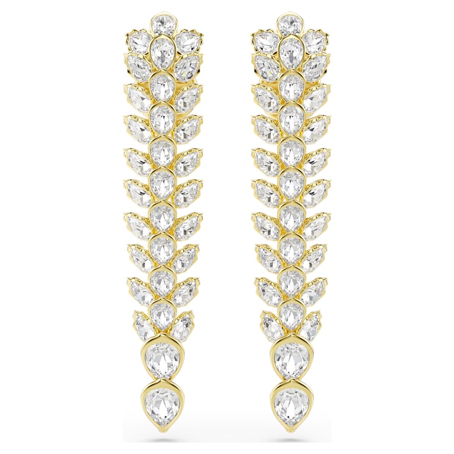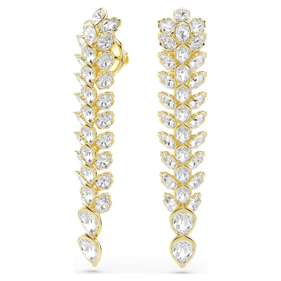 Set your style alight with the full luminosity of these long Idyllia earrings. Each gold-tone plated piece follows the expressive pattern of foliage, with a cascading drop of crystals in bezel settings. Adding a stunning effect to your most glamorous occasions, these earrings are the ultimate example of Swarovski savoir-faire and combine perfectly with a matching choker or bracelet.