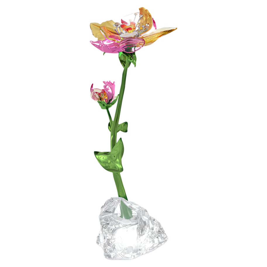 Embrace a flower that is always in full bloom. Reaching tall on its elegant green stem, this extraordinary figurine is crafted in varying shades of yellow and pink crystals with 136 beautiful facets, enhanced with lacquered metal accents and 23 additional stones. A vivid touch of nature that will brighten any home. Decoration object. Not a toy. Not suitable for children under 15.