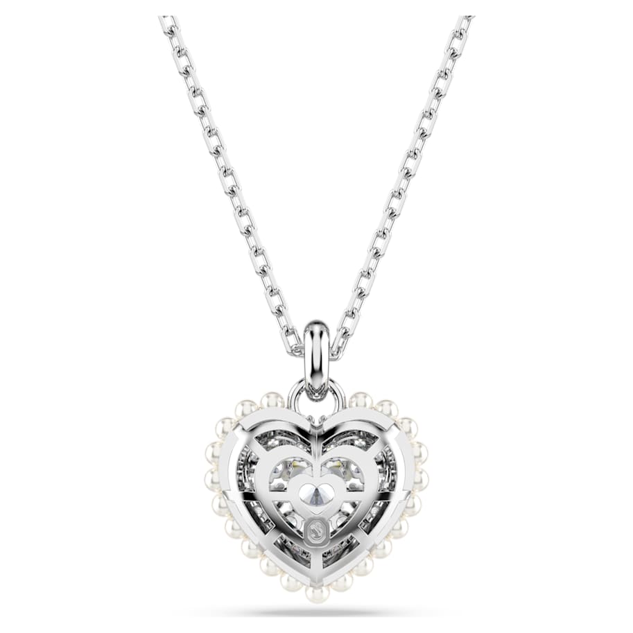 Let romance shine with this heart-shaped pendant from the expressive Idyllia family. The rhodium-plated jewelry has been created with a cage design for maximum volume. To enhance the domed effect, it is adorned with round clear Swarovski Zirconia, set in place using the dazzling chatonnage technique. Light up your own look or gift this pendant to someone you adore.