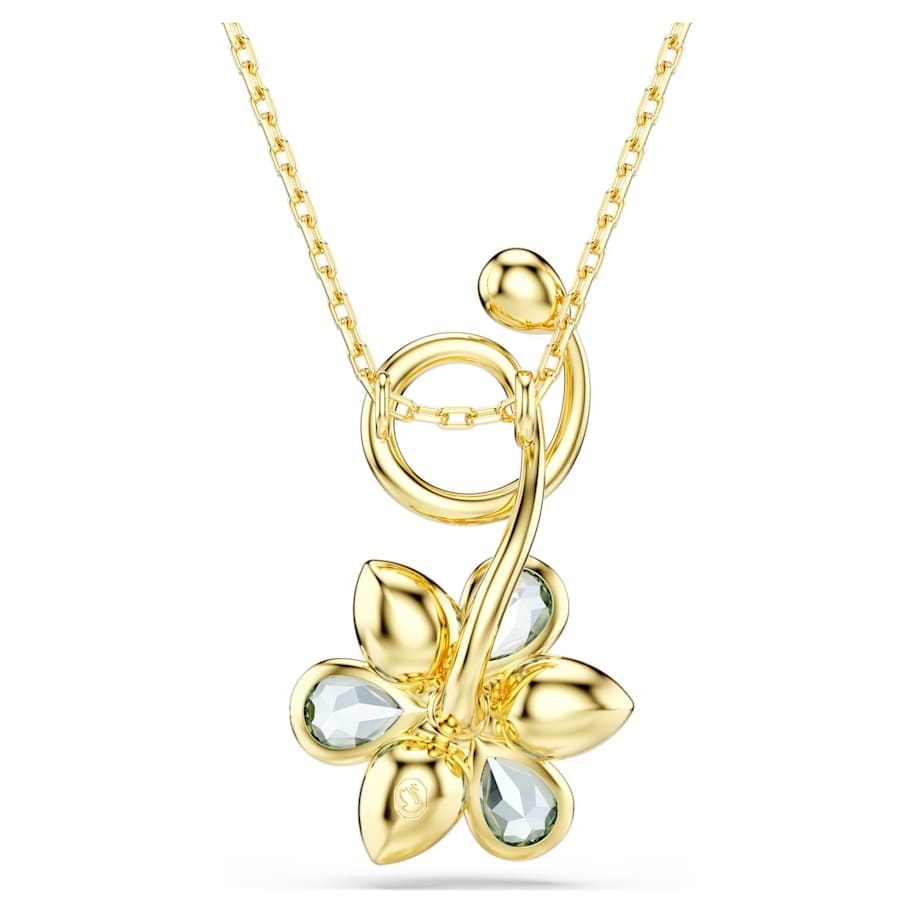 Brighten your style with this crystallized tribute to nature. Suspended from a delicate chain, the central motif is shaped like a flower, with radiant blue petals and a gold-tone plated stem. The mix of shapes and shades gives this Idyllia pendant an infusion of joy, which will boost your mood throughout the day.