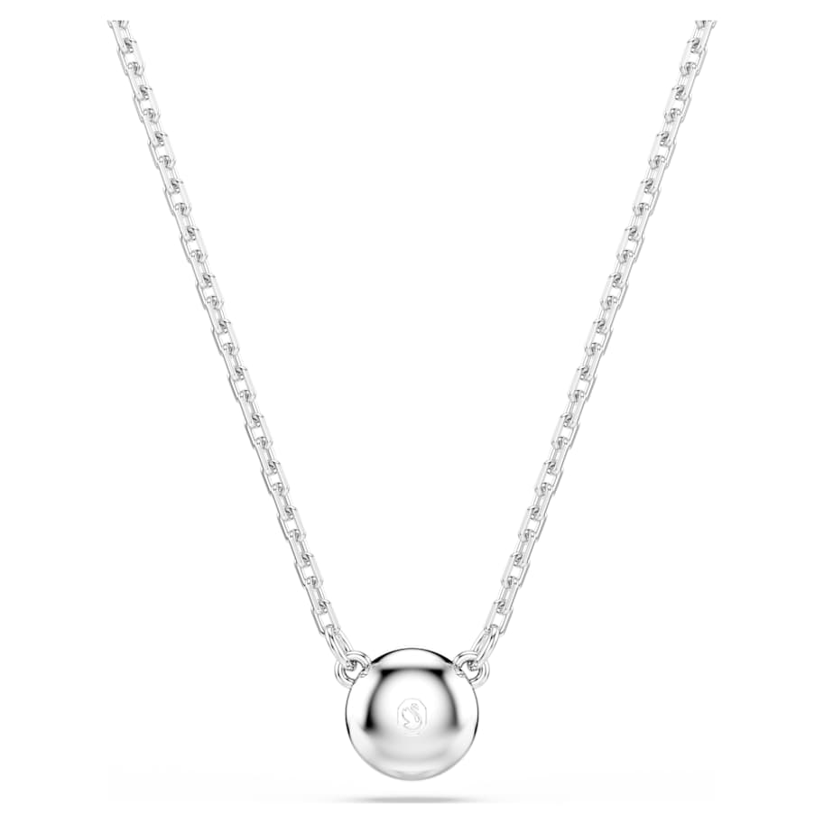 Effortless elegance is within reach thanks to this radiant Imber pendant. Suspended from a delicate chain with a lobster closure, the rhodium plated design features a central round-cut crystal in a puffy bezel setting. A single Swarovski Zirconia is also placed in the elongation for added radiance. Wear this piece to elevate your everyday style.