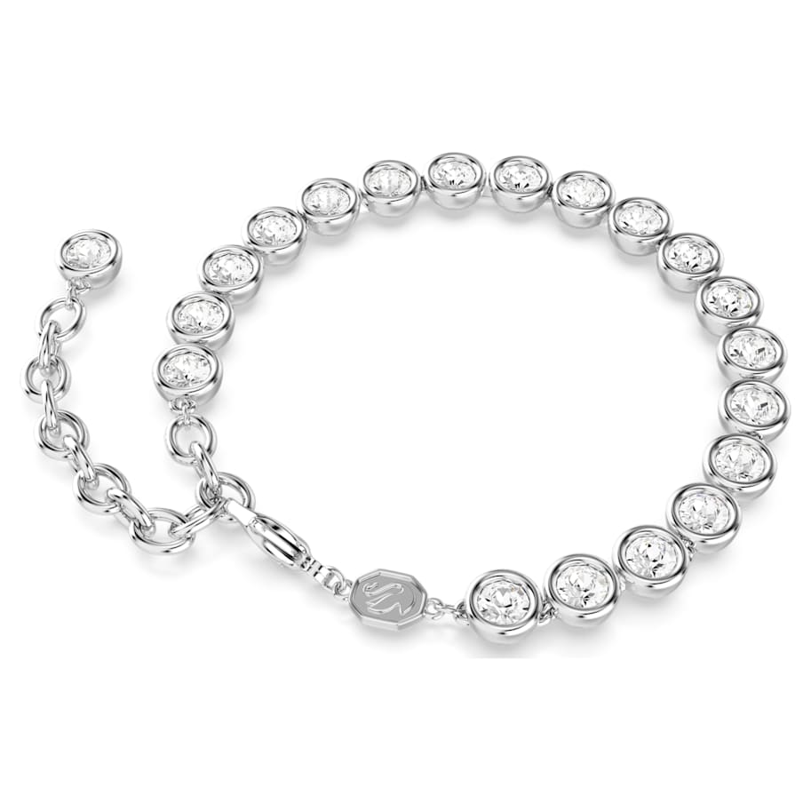 Crafted with a classic mix of subtle tones, this Imber tennis bracelet is a perfect choice for timeless sophistication. The rhodium-plated design features a complete strand of round-cut crystals in a puffy bezel setting and is completed with a lobster closure. A great way to enhance your casual styling or elevate an evening look.