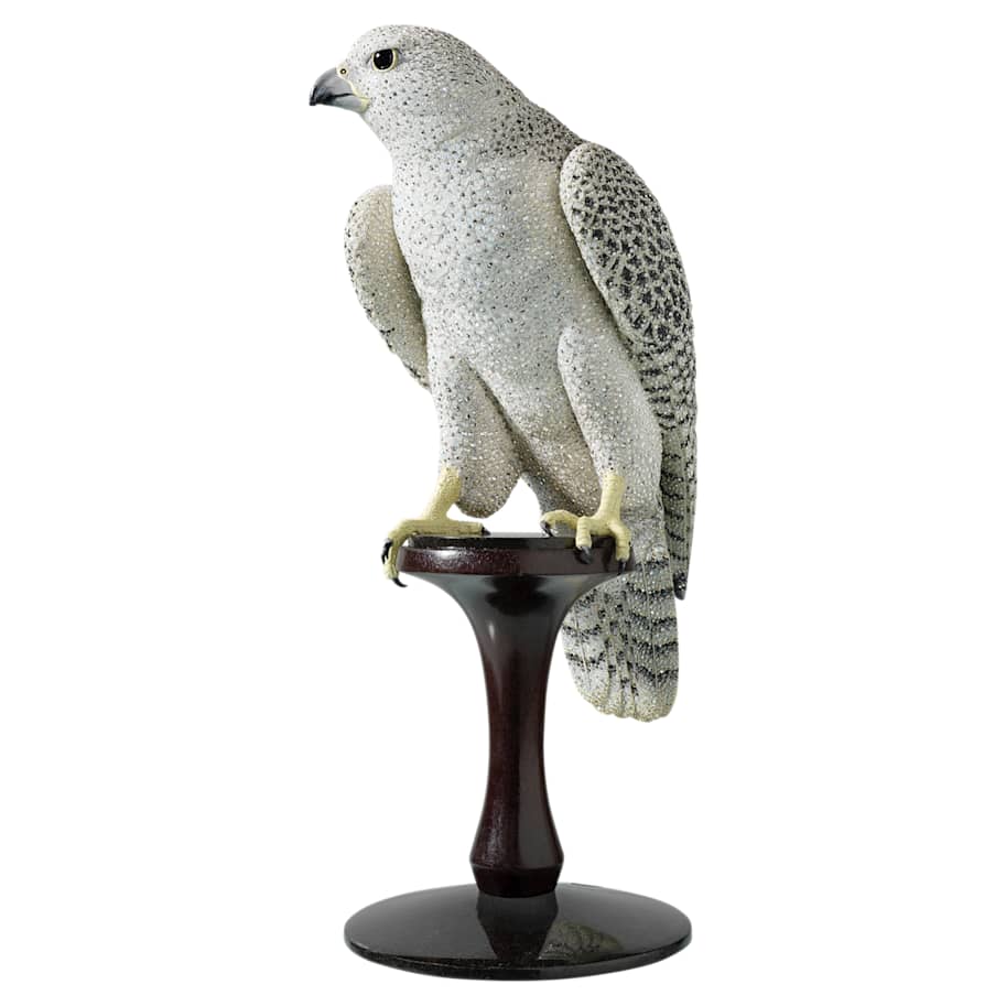 A spectacular interpretation of the Gyrfalcon symbolizing power, freedom, and determination. Part of our Crystal Myriad collection, this breathtaking work of art is only crafted on demand and takes over 587 hours to create. The beautiful falcon stands attentively on a granite and wood base, displaying its natural grace and stunning plumage to bedazzling effect. An exclusive statement piece, Kedari, Large is adorned with over 70’000 crystals in six different colors, set by hand using Swarovski’s exclusive Pointiage® technique for maximum brilliance. Each edition, which is crafted on demand, comes with a certificate of authenticity. The shipping procedure includes insurance and a delivery notice. Decoration object. Not a toy. Not suitable for children under 15.