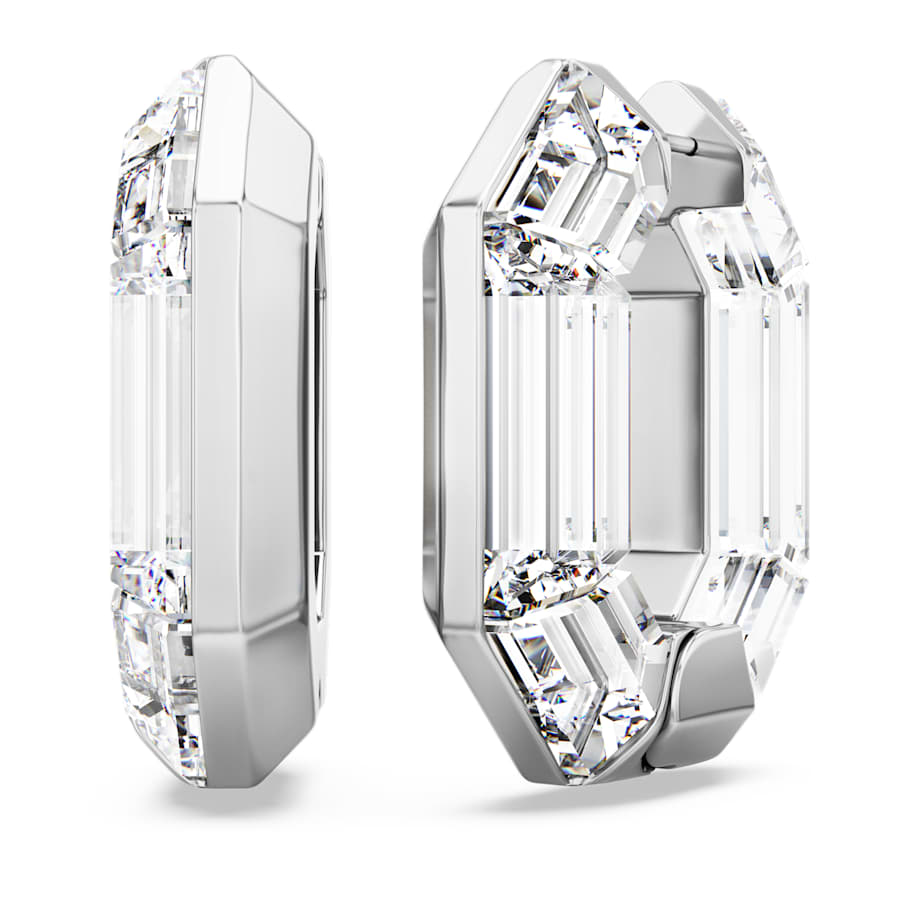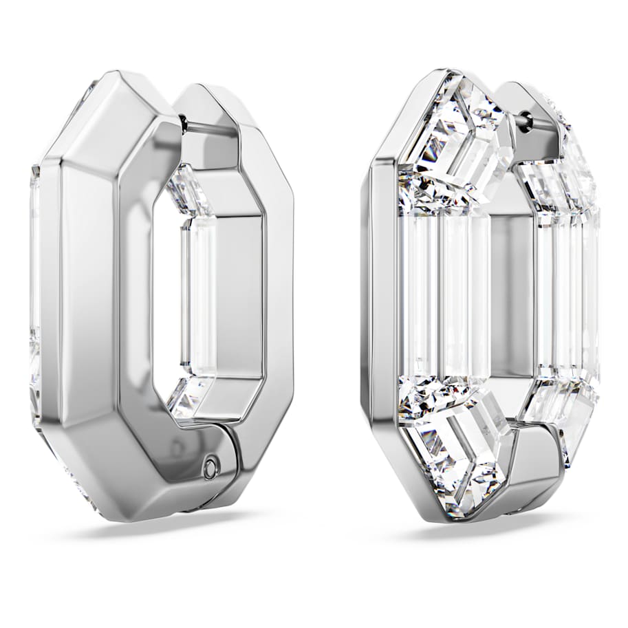 These mesmerizing mini hoop earrings are an exquisite example of Swarovski’s mastery of light. Each clear crystallized hoop features a discreet post fastening and an easy-to-open hinge mechanism. A striking graphic piece with a sports luxe edge.