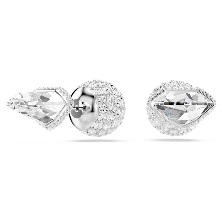 These versatile Lucent studs encourage you to get creative with your styling. Each rhodium plated piece features a faceted clear crystal at the front and two options for the back: a smooth ball closure in white, or a ball adorned with a pavé of round-cut crystals. A unique piece that will inspire your imagination.