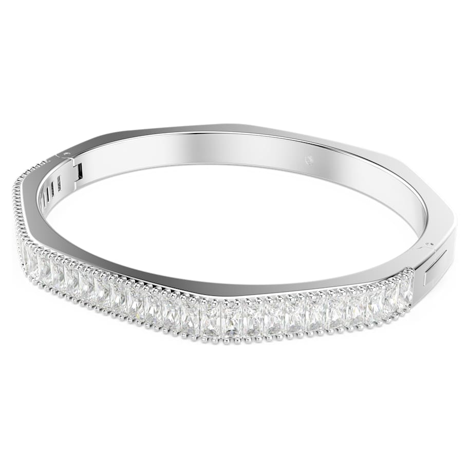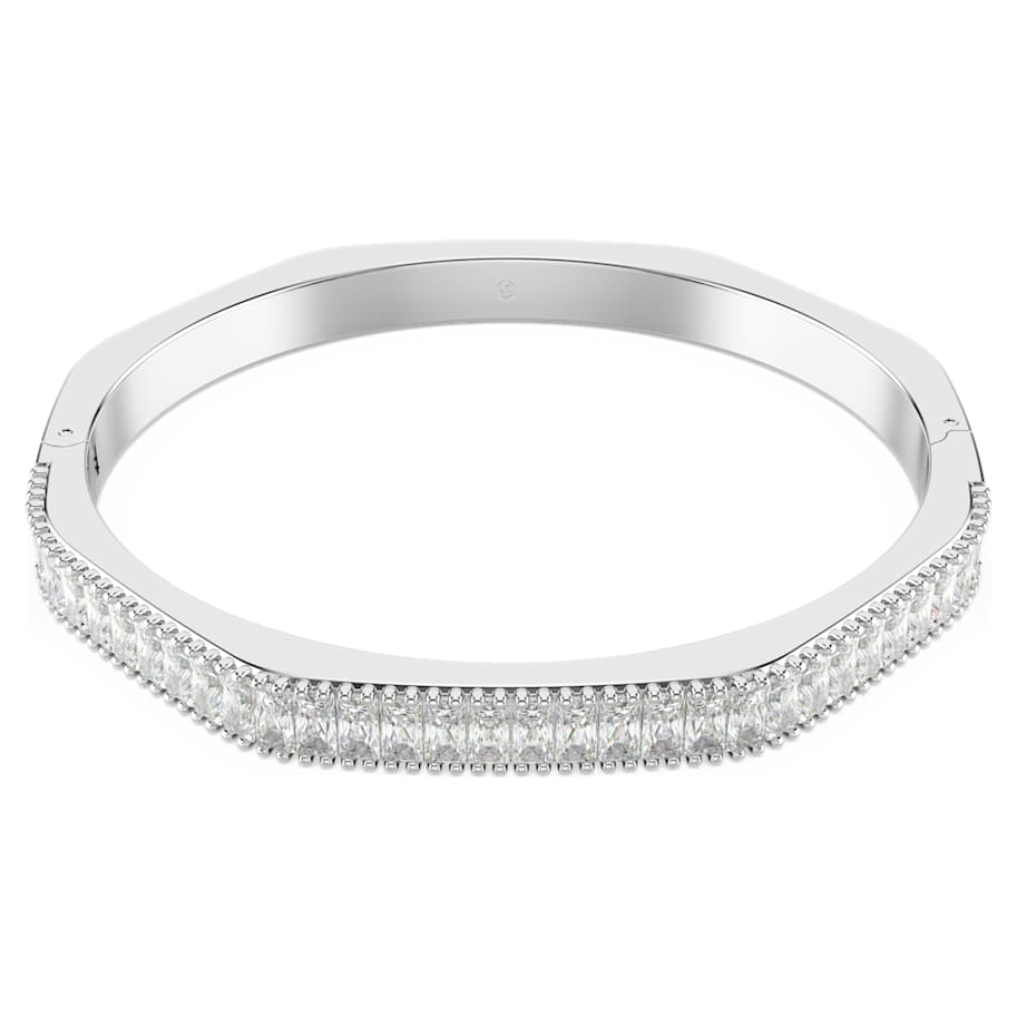 Ignite your everyday look with this hinged Matrix bangle. The rhodium plated design is crafted in Swarovski’s emblematic octagon shape and is beautifully adorned with clear baguette-cut Swarovski Zirconia in a vertical setting. Perfect for stacking alongside matching Matrix bangles, it’s a full surround of radiance to express your most elegant self.