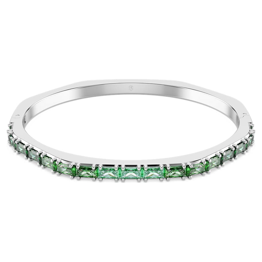 Ignite your everyday look with this hinged Matrix bangle. The rhodium plated design is crafted in Swarovski’s emblematic octagon shape and is playfully adorned with a gradient of green baguette-cut Swarovski Zirconia in a horizontal setting. Perfect for stacking alongside matching Matrix bangles, it’s a full surround of signature Swarovski color to express your most vibrant self.