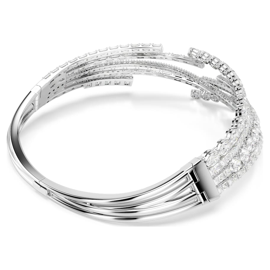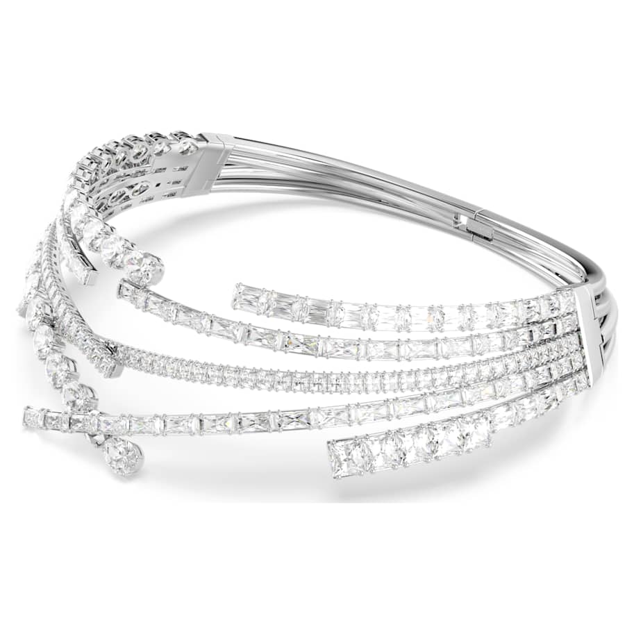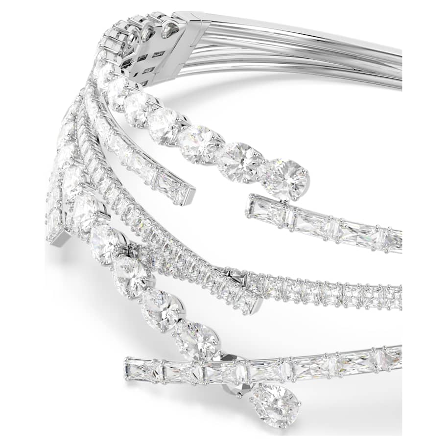 A classic example of Swarovski savoir-faire, this stunning choker is the ultimate way to bring glamour into your style. The sleek and modern design is rhodium plated and features a foldover clasp for a comfortable and secure fit. To create a look of scintillating radiance, five different cuts of Swarovski Zirconia are used to adorn the choker’s strands, adding even more drama to the light-catching appearance. Wear this jewelry with the matching bangle and earrings for a look of pure sophistication.