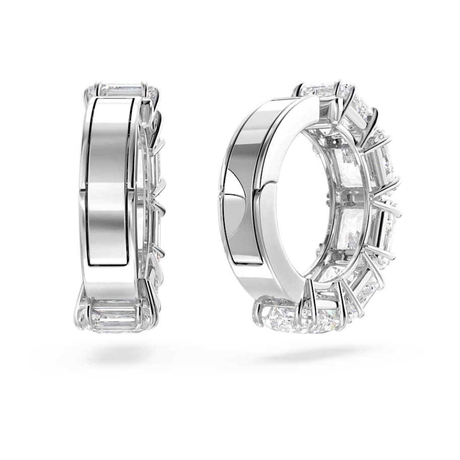 The essential style of our Matrix family is masterfully displayed in these shining clip earrings. A uniform row of clear square-cut stones is set in rhodium plating, igniting a harmonious balance of metal and crystals. It’s a dazzling look that can be enjoyed any time - day or night.