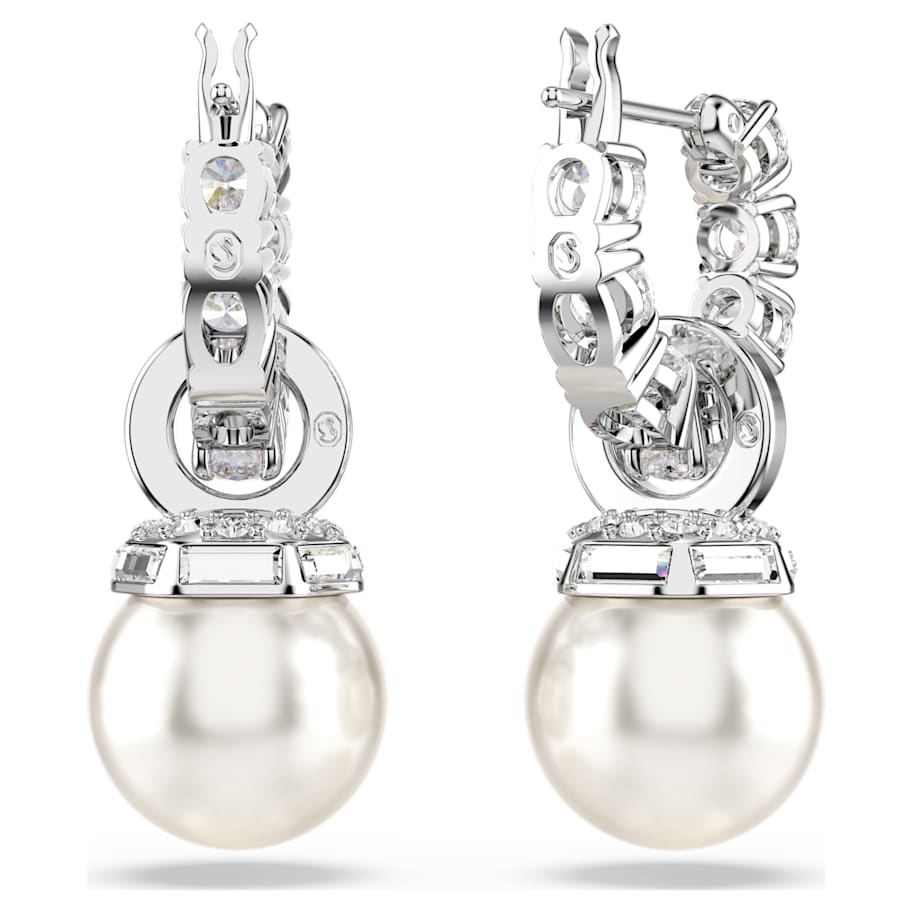 Amplify the elegance in your style with these Matrix pierced earrings. The rhodium plated pieces feature tennis hoops and connecting rings that are embellished with dazzling pavé, while the Swarovski Crystal Pearls add a classic touch of pure refinement. It’s the reimagination of a timeless look that you can wear for almost any occasion.