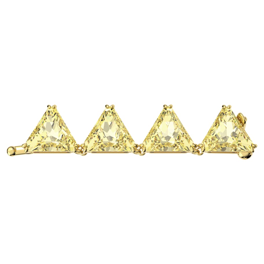 Elongate your Millenia necklace with this extender. Featuring four triangle-cut crystals in vibrant yellow, it's finished with gold-tone plating. Use it to create your desired length for comfort and style.
