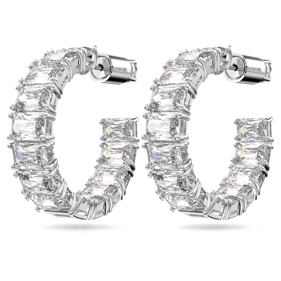 A classic hoop design with a dazzling twist, this elegant pair features a uniform row of octagon-cut stones cradled in a fine, rhodium-plated frame. Adding just a touch of everyday magic to any look – day or night. These earrings are part of the Matrix family, designed by Creative Director Giovanna Engelbert for Collection III.