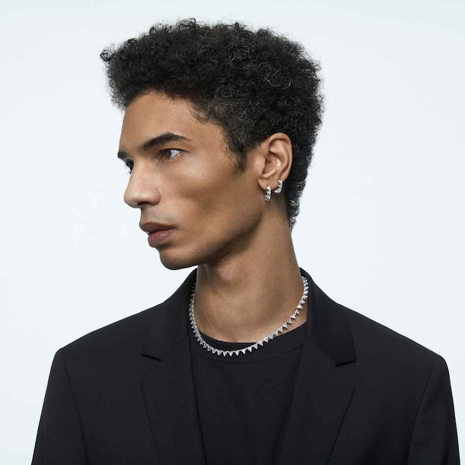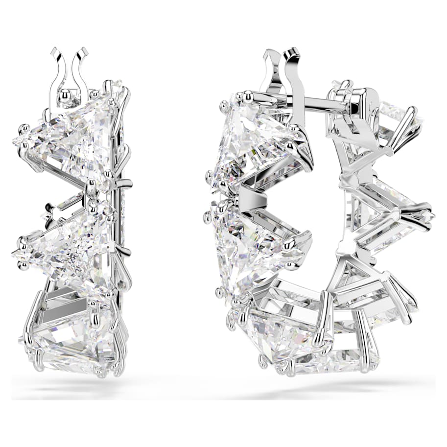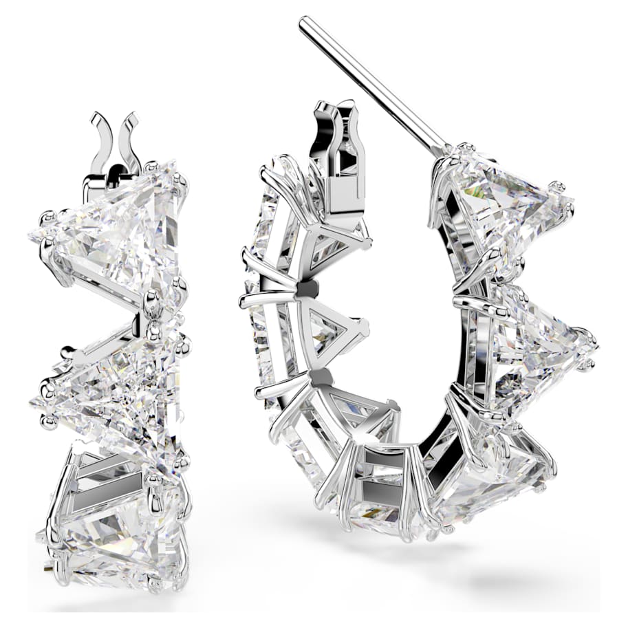 Subtle in size but impressive nonetheless, these delicate hoop earrings are a modern wardrobe essential. Crafted from a row of tesselating triangle cut stones, they're set on a sleek rhodium plated frame. Wear yours solo for a subtle statement, or stack them with chunkier styles for a layered look. These earrings are part of the Matrix family, designed by Creative Director Giovanna Engelbert for Collection II.