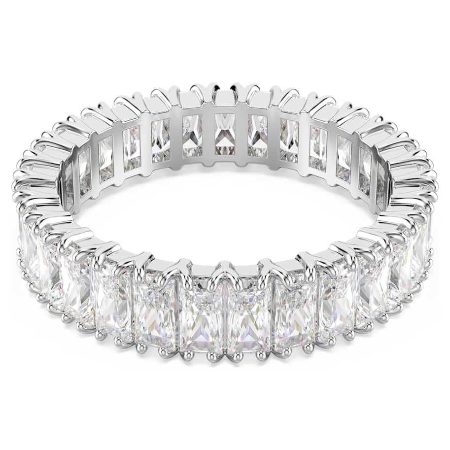 No jewelry collection is complete without a radiant band ring. This silver-tone finish design features a full surround of baguette-cut Swarovski Zirconia, each placed within a refined prong setting. A sensational piece to wear solo or stacked with similarly dazzling rings from the Matrix family.